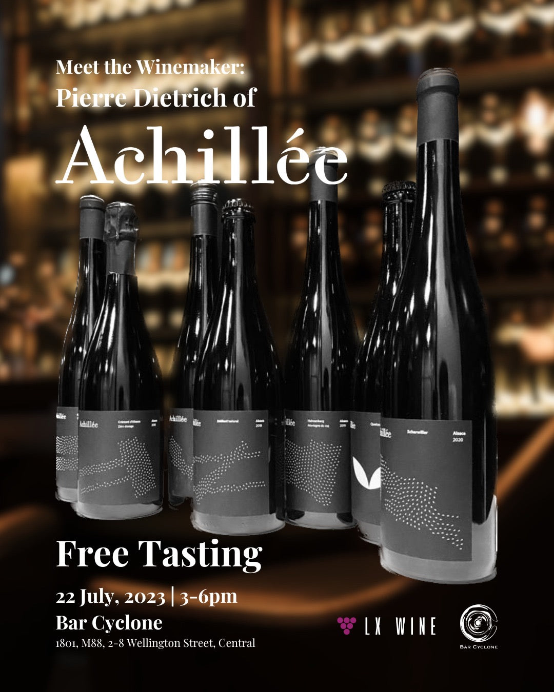 Taste the wines of Domaine Achillée from Alsace with the winemaker Pierre Dietrich at Bar Cyclone.